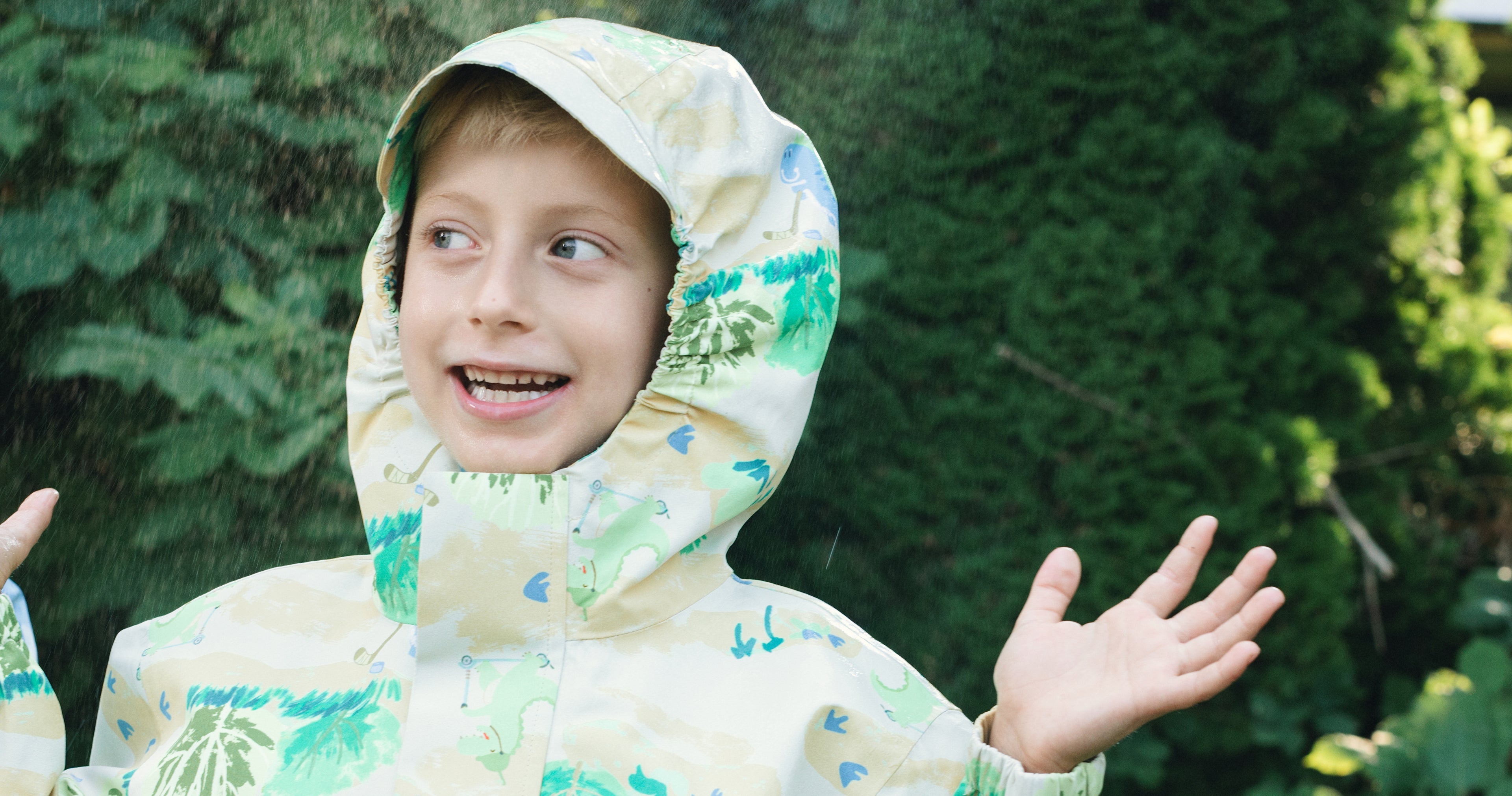 Kids Fleece Lined Waterproof Rain Jacket | Little Stanley Snowy Dino